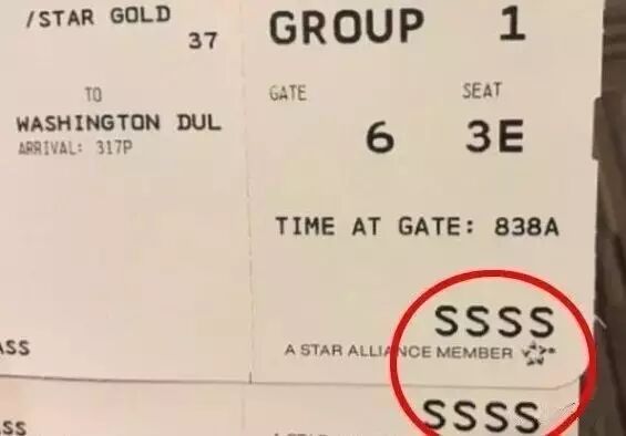 根据《每日邮报》(Daily mail)报导,“SSSS”代码的意思是“二次安检”(Secondary Security Screening Section)的缩写,由美国运输安全管理局(TSA)所设计,意味着旅客必须经过更严格的安检,例如扫描行李、安全搜索、身分验证等,有时需要半小时以上。